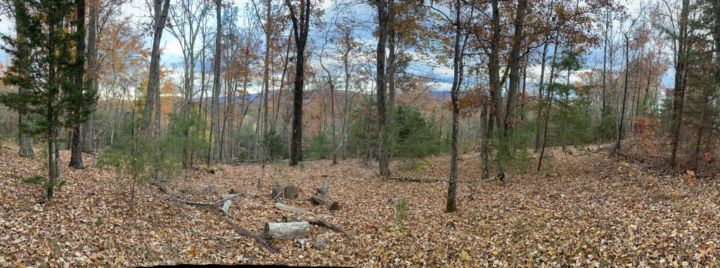 Yesterday was a really windy day and those winds took most of the remaining leaves from the trees. Let me show you the view from our evening walk. Mom calls this particular spot “the peaceful spot”. She thinks it one of the prettiest places on the property.