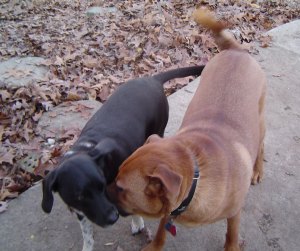 I love my big brother. He’s sort of on the goofy side, but I love him anyway. Now that the weather is starting to turn cooler, he’s decided to play again. Hooray!! I hide behind the outdoor fireplace, and slowly stalk him. He’s sooo clueless! As soon as he gets close enough, I spring into action and pounce him!! So much fun! And those floppy ears of his are perfect for grabbing onto and pulling!!